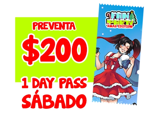 Incluye : Acceso por 1 día al evento, expositores, artistas, cosplayers, clubs, conferencias, invitados y mucho más.